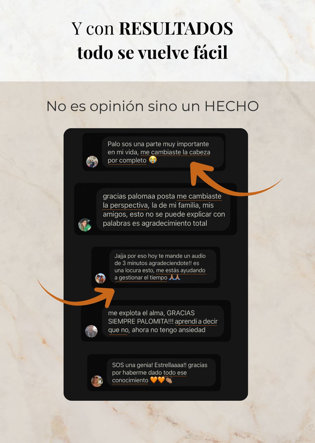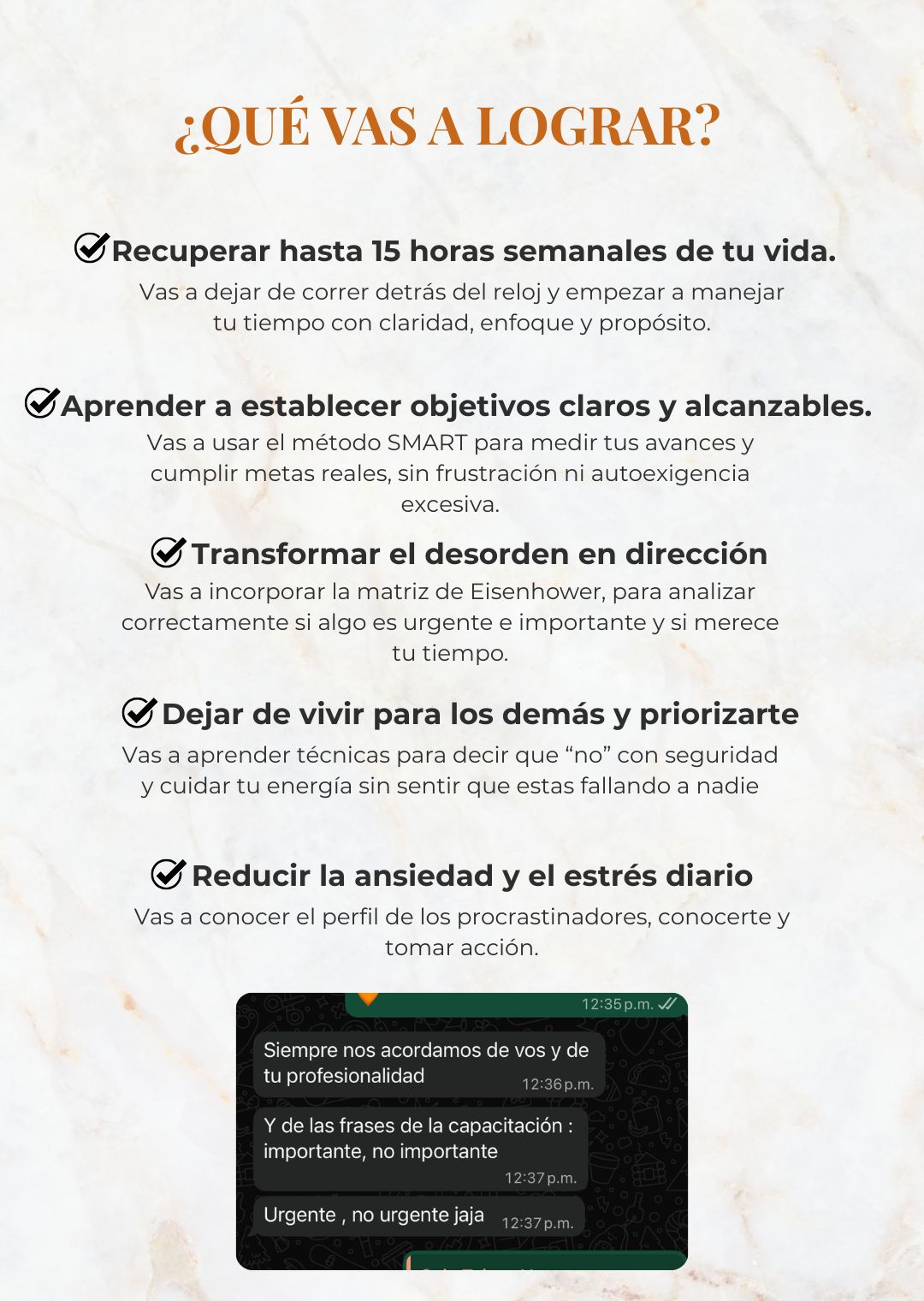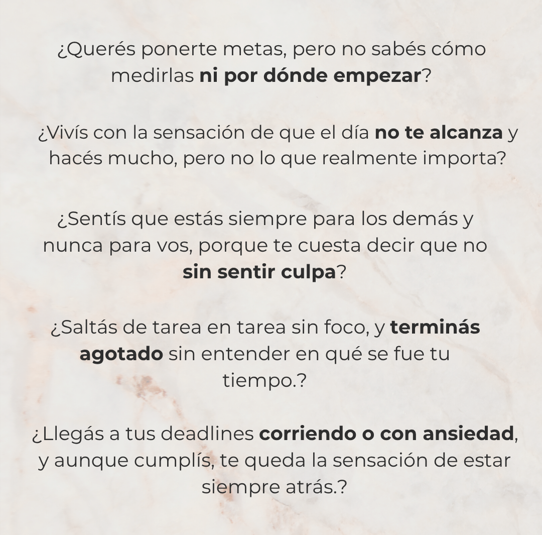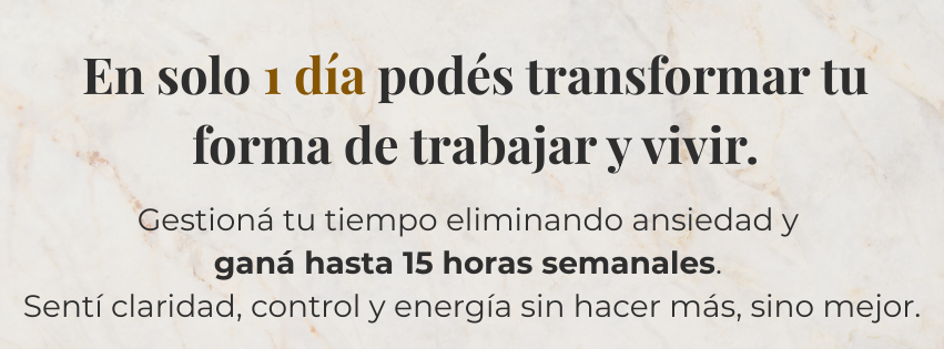 Si en ese tiempo no te aporta claridad, foco o una nueva forma de mirar tu tiempo, te devuelvo el 100% de tu inversión.